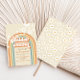Retro Brautdusche Einladung mit boho Regenbogen und gedämpftem Design.