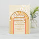 Retro Brautdusche Einladung mit boho Regenbogen und gedämpftem Design.
