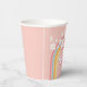 Fünf ist ein Vibe! Retro inspirierte Papiertassen zum 5. Geburtstag mit Schriftart und Farben im Stil der 70er Jahre, Regenbogen und Gänseblümchen in Rosa