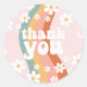 Retro Rainbow Groovy One Daisy Runder Aufkleber