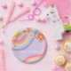 Retro Rainbow Birthday Paper-Teller im lila Hintergrund für kleine Mädchen