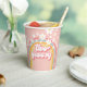 Zwei Groovy! Retro inspirierte Papiertassen zum 2. Geburtstag mit Schriftart und Farben im Stil der 70er Jahre, Regenbogen und Gänseblümchen in Rosa