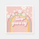 Zwei Groovy! Retro inspiriert Servietten zum 2. Geburtstag im Stil der 70er Jahre mit Schriftart und Farben, Regenbogen und Gänsebläschen in Rosa