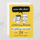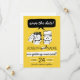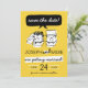 Fun Retro Save the Date Karte mit Bräu und Bräutigam Raptor Dinosaurier. Mit leicht anpassbarem Farbschema hergestellt.