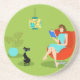 Retro Reading Woman Sandstone Untersetzer