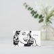 Retro Frau hält ein Telefon an ihrem Ohr "Call Me" auf der rechten Seite/ Zurück ist schwarz mit weißem, anpassbarem Text