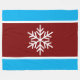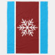 Dieses festliche Weihnachtssaison-Design verfügt über eine große weiße nordische Schneeflocke, zentriert in breiten, tiefroten und weißen Streifen mit azurblauen Kanten.