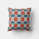 Dieses Kopfkissen weist ein geometrisches Retromuster in Rot, Blau und Hellgrau auf.