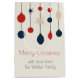 Niedliches Retro Frohe Weihnachtsgeschenk-Tasche mit Vintagen 70-Stilschmuck in Rot, Blau und Elfenbein über Ihrem Familiennamen. Schöne nostalgische Geschenktaschen.