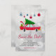 Retro Red Car mit einem Weihnachtsbaum Save The Date