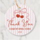 Retro Red Cherries with Pink Bow Script Thank You Geschenkanhänger