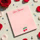Cute Valentine's Day custom flat stationery notepads. This unique design retro Red cherry features . Easily change the font style and color to personalize just for you.
