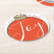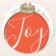 Moderne Darstellung eines Retrostil roten Weihnachtsschmucks mit dem Wort "Freude" in weißer Schrift, umgeben von einem personalisierten Namen und Jahr. Die Rückseite kann mit einem familiären Foto angepasst werden. Design von Shelby Allison und Foto von Jessica Rockowitz auf Unsplash.
