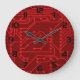 Retro Red Circuit Board Tech Pattern Große Wanduhr