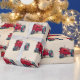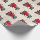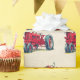 Red Farm Traktor auf texturiertem, hellbraunem Hintergrund.
