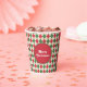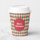Feierlich und rustikal aussehend Vintages harlequin Diamantmuster im Urlaub rot und grün auf Not / alt Hintergrund. Anpassbare Textzirkulation in der Mitte