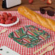 Retro Red Green Strip Design Ornament Muster Pappteller