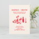 Retro Red Hand Drawn Scribble alle in einer Hochze Einladung