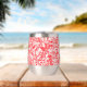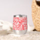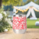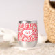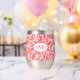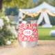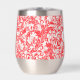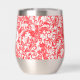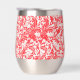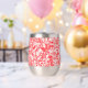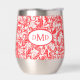 Dieses Weinwäscher-Glas hat ein hübsches Retroblattwirbelmuster. Ihr dreifaches Buchstabenmonogramm ist in Rot auf einem weißen ovalen Banner.