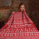 Weihnachtsbaum, Schneeflocke und Rentierfisch-Raute Pullover-Muster in Weiß und Rot rund um Ihren personalisierten Text auf einer Urlaubsdecke. Mit diesem nostalgischen, altmodischen Geschenk können Sie Ihre Feriendekoration individuell gestalten.