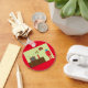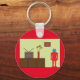 Ein roter Retro-Roboter in einem Wohnzimmer. Dieses Design wirkt auf diesem Schlüsselanhänger wirklich effektiv