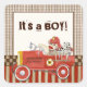 Retro Red Sock Monkey, Baby Boy Dusche Siegel Quadratischer Aufkleber