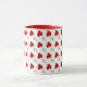 Eine Retro-Tasse mit roten Erdbeeren und weißen Erdbeeren-Blume.