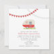 Eine Hochzeitseinladung mit einer Illustration eines roten Vintagen Trailers im Gras geparkt. Der Trailer hat ein Fenster mit Gänsebläschen und schwarzen mit Augen Sushans gefüllt. Graue und rote Stange oben. Personalisieren Sie den Text mit Einzelheiten Ihrer Veranstaltung. Suchen Sie nach passenden Artikeln in Jill's Paperie.