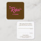 Eine super niedlich rosa Retro-Typografie und Sterne in brauner Hintergrund Referralkarte ideal für jeden in der Beauty- oder Modebranche. .Für zusätzliche passende Marketing-Materialien, individuelle Gestaltung oder Logo-Anfrage, kontaktieren Sie mich bitte unter maurareed.designs@gmail.com und ich werde innerhalb von 24 Stunden antworten. Für den Versand, Kartenbestellungen und Preise wenden Sie sich direkt an Zazzle.