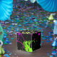 Retro-Regenbogen von Neon Paint-Spritzern auf Schw Geschenkschachtel