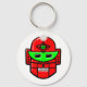 Ein roter Roboter mit einem stilistisch grünen, halbmondförmigen Auge, einem grünen dritten Auge mit weißen Zähnen und Highlights. Er hat eine Art seltsames Grinsen, als ob er die Wunder eines revolutionären neuen Motoröls entdeckt hätte. Aus einem von N.A. Berry zeichnend Originalvektor.