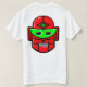 Ein roter Roboter mit einem stilistisch grünen, halbmondförmigen Auge, einem grünen dritten Auge, mit weißen Zähnen und Highlights. Er hat eine Art seltsames Grinsen, als ob er die Wunder eines revolutionären neuen Motoröls entdeckt hätte. Aus einem von N.A. Berry zeichnend Originalvektor. Das Motiv wird sowohl auf der Rückseite als auch auf der Vorderseite wiederholt.