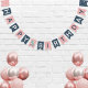 Fun und niedlich blush rosa und dunkelblau aquamarine bunting Fahnen für ihre Roller Skaten Geburtstagsparty mit "Happy Birthday" in schlichter moderner Typografie und einer Retro-inspiriert Abbildung eines Roller-Skate.