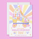 Ein lustiges und helles Retro-inspiriert Roller-Skate-Design in der Farbpalette pastellfarben pink, orange, lila und gelb. Auf der Vorderseite ist ein Skate mit dem Text 'Let's Roll' in einem Retro-Drehbuch mit einem Regenbogen, der dahinter platziert ist, und auf der Rückseite ist ein lustiges, helles Muster von Roller-Skaten. Passen Sie die Details für Ihr Party an! Sehen Sie sich die komplette passende Party-Auflistung an.