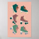 Retro Rollerskates Green Dusty Pink Groovy Cool Poster