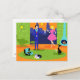 This Retro Romantic Evening Pärchen Postcard looks like a scene out of a 1960's romantic comedy. The minimalist design feature an attraktiv cartoon paarweise in the living room of a mid century modern, urban apartment. The room prominently feature a green, stone wall with a floor to ceiling window with a view. Through the window, we can see the blue silhouette of a big city skyline. In der orangenen Sky of Sunset. The furnishings in the room include a green, lounge fleisch with matching footstool, yellow, sputnik light fixture, and a turquoise, cone shaped fireplace, complete with roaring fire. In the center of the orange flooring, there is a round, green shag rug. Auf Handy, Turquoise und Black Record Player is placed on the Rug. Next to the record player, a vinyl record can be seen poking out of a kitschy album cover. Also, wir sind der Rug, there is a sleek, black cat wearing a teal collar. This fancy feline is sitting in front of a martini glass. Enjoying this scene, we have very sophisticated paares. There is a suave man wearing a blue suit, light blue shirt and red tie. The tall, dark and handsome man is enjoying the company of an elegant blonde woman. The lovely lady is wearing a hot pink dress with a form fitting bodice and flared skirt. They are each holding a crystal martini glass with a floating olive. Cheers! Here's to the perfekt evening at home!