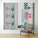 Retro Rosa & Blue Checkerboard Diner Background Wandteppich