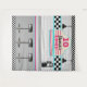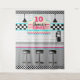 Einzigartig und Spaß! Retro Diner Countertop Hintergrund mit rosa und blauen Farben und Schachbrettmuster. Passen Sie den Namen, das Alter oder die Initialisierung des Menübanners an. ©2021 Miss Sassy Party Designs