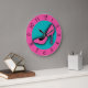 Für Modeliebhaber wird diese Retro Artuhr mit einem Absatzschuh in einem Rosa- und Aqua-Farbschema gedruckt.