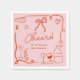 Fügen Sie Ihrem Brautparty eine Touch Vintagen Charme mit unseren Retro Pink Red Napkins hinzu! Diese herrlichen Servietten zeichnen sich durch ein skurriles Design aus, das durch Retro-Elemente wie Kuchen, Wein, Gläser, Herzen und hübschen Bandbogen inspiriert wird. Die Servietten sind mit einem spielerischen, schwach gewölbten Band versehen, das das Design umrahmt und den Gästen ein Lächeln in die Gesichter bringen wird. Einen Pop von Farbe und Persönlichkeit zu Ihrer Feier hinzufügen.