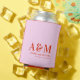 Retro-Rosa- und Rot-Monogramm-Hochzeit kann kühler Dosenkühler