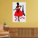 Retro-Rot-Silhouette mit Eiffelturm Poster