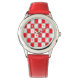 Kinderuhr aus Edelstahl mit rotem Lederarmband
