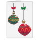 Vintage Illustration Fröhliches Weihnachtsfeierdesign mit rot-grün runden Hängemaschinen. Sie sind mit gelben dekorativen Wirbel, Streifen und Diamantformen dekoriert. Klassischer Retro 50er kitsch.