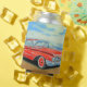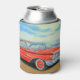 Retro rotes Auto, Küstenmalerei. Dosenkühler