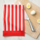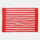 Ein rotes und weißes Retro Süßigkeitsstreifen-Muster-Geschirrtuch mit roten Grenzen.