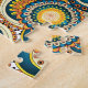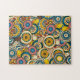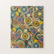 Das Puzzle Design hat eine Menge gemusterter Runden im Retro-Stil, die Spiralen, Mandalase und Blume beinhalten.