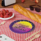 Retro-Rücklauf zum Lila Gelben Sun-Party der 80er Pappteller