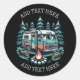 Spaß Camping Reise thematisch personalisierte Aufkleber. Niedliche Retrografik eines RV in Vintagen Farben.
