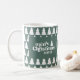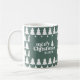 Retro Sage Grüne Weihnachten Moderne Minimal Einzigartiges personalisiertes Familienurlaub Tasse Design Mit modernen handgezeichneten Texten und Bäumen.